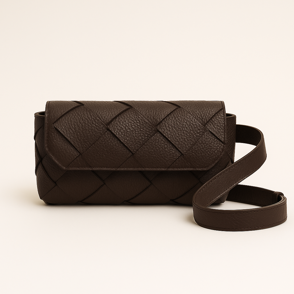 A study in texture and proportion, this compact Edward crossbody is crafted from 100% genuine pebbled leather, meticulously hand-woven into NVY’s signature lattice pattern.