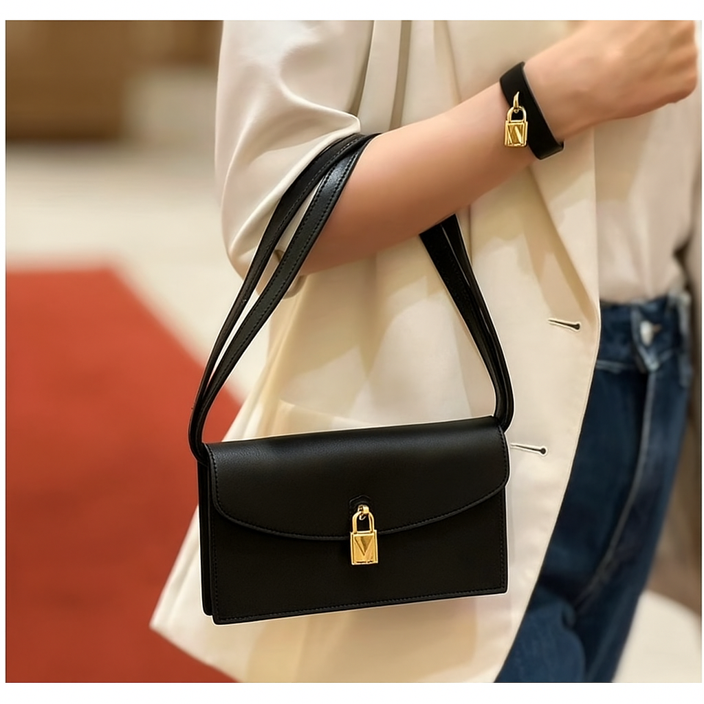 Crafted in genuine leather, the Monroe Bag embodies timeless elegance through quiet sophistication. Its structured silhouette is elevated by a signature gold-tone padlock clasp — a subtle emblem of modern minimalism.