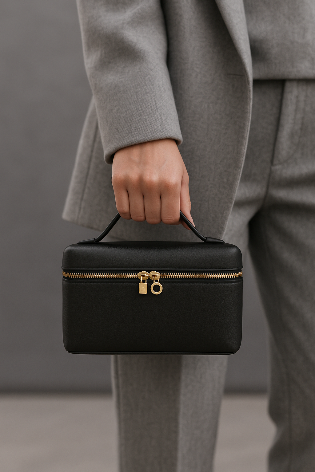 The Elise bag is made from supple genuine leather and adorned with refined hardware, this sophisticated bag effortlessly transitions between a top-handle carry and a sling. Ideal for evening affairs, it also serves gracefully as a cosmetic, skincare, or toiletry case.